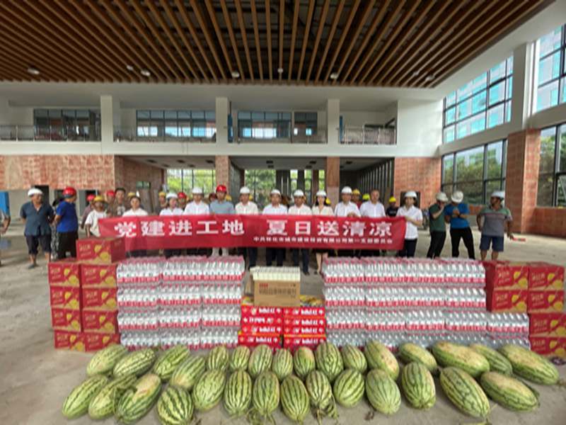 為切實(shí)關(guān)愛關(guān)懷施工一線人員, 7月21日下午,中共懷化市城市建設(shè)投資有限公司第一支部委員會(huì)組織黨員干部深入在建項(xiàng)目施工現(xiàn)場(chǎng)開展“黨建進(jìn)工地 夏日送清涼”主題黨日活動(dòng)。給在高溫下工作的一線建筑工人們送去了礦泉水、西瓜、紅牛、藿香正氣水等防暑降溫物資。