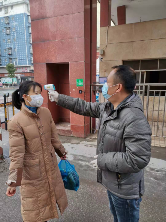 2月4日,突擊隊(duì)員為小區(qū)進(jìn)出人員檢查體溫