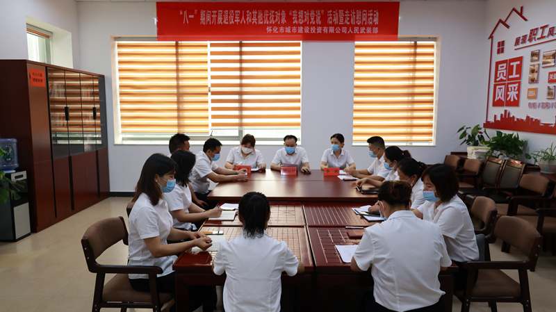 今年是中國(guó)共產(chǎn)黨建黨100周年,中國(guó)人民解放軍建軍94周年,懷化市城市建設(shè)投資有限公司高舉習(xí)近平新時(shí)代中國(guó)特色社會(huì)主義思想偉大旗幟,深入貫徹黨中央、國(guó)務(wù)院、中央軍委和習(xí)近平總書記關(guān)于加強(qiáng)軍政軍民團(tuán)結(jié)的指示精神,扎實(shí)做好“八一”期間擁軍優(yōu)屬工作。結(jié)合黨史學(xué)習(xí)教育,8月10日,我公司武裝部開展走訪慰問(wèn)退役軍人和其他優(yōu)撫對(duì)象暨“我想對(duì)黨說(shuō)”主題活動(dòng),黨委委員、監(jiān)事會(huì)主席劉運(yùn)祥主持活動(dòng)。