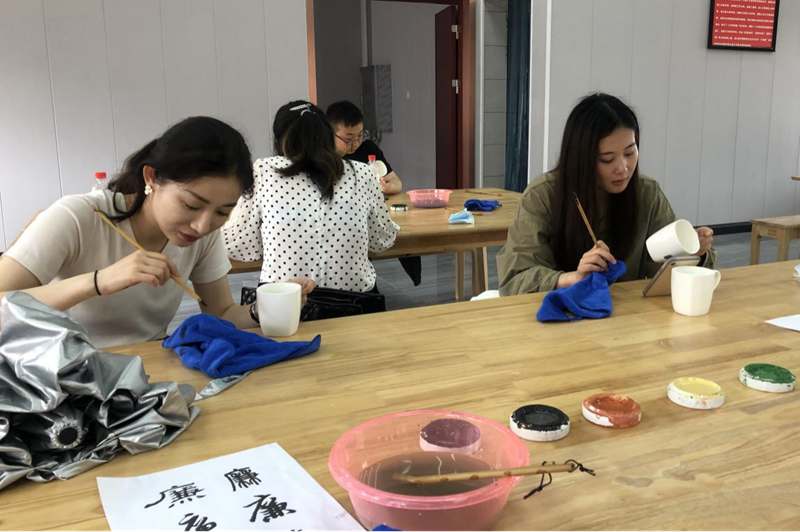 圖3 團(tuán)員們沉浸式體驗(yàn)清廉文化陶瓷繪制活動(dòng)