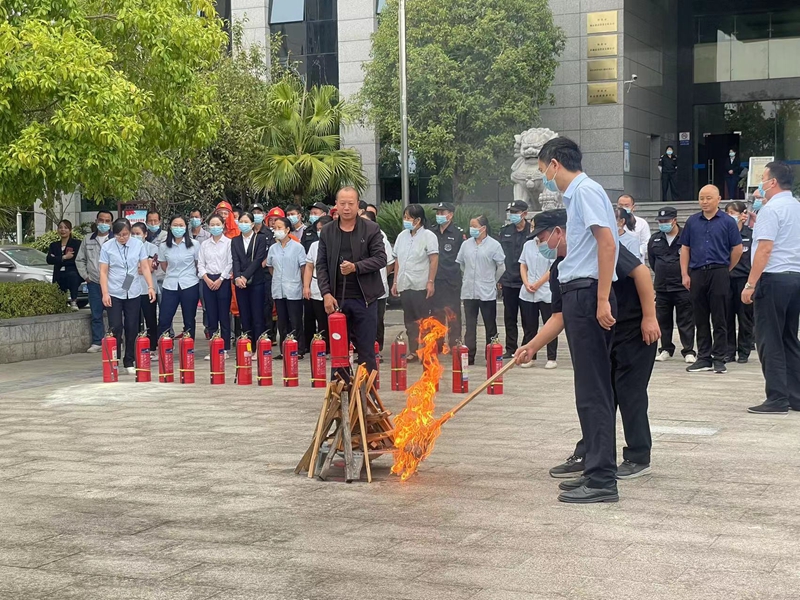 活動當天,市城投公司黨委委員、監(jiān)事會主席、工會主席劉運祥宣布消防演練開始。安全講解員何平講解消防栓及干粉滅火器、應急照明燈等消防設備的作用、工作原理、使用范圍及使用方法。武裝部基干民兵、資產(chǎn)經(jīng)營公司人員、物業(yè)安防人員分別使用滅火器與消防栓進行滅火。