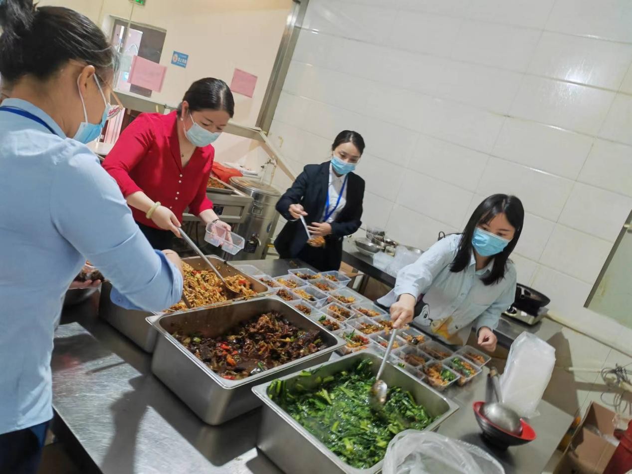 面對疫情變化,公司食堂工作人員出行受限,眼看國資系統(tǒng)抗疫人員,市城建投公司、市交建投公司包保社區(qū)志愿者、醫(yī)務人員和駐守大本營的守護者用餐無法保證時,市城建投公司領導率先垂范,帶領“大本營”守護者們走進食堂,紛紛化身洗菜工、切菜員、廚師、打菜員……自己動手,煮飯炒菜,打包送餐?!皠傞_始挺怕,壓力也大,頭一回用大型的廚房設備,挑戰(zhàn)兩三百人的用餐,心里在打鼓,怕操作不當,耽誤大家就餐,怕味道不好等,還是大家的鼓勵和齊心協(xié)力,讓我們圓滿完成任務。”后勤保障組工作人員笑道,“掌勺不易,還好最后大家都挺滿意”。