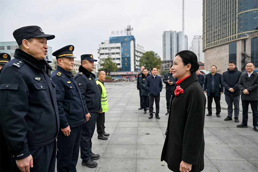 懷化火車站廣場周邊是節(jié)假日主城區(qū)繁忙地段之一。韋朝暉來到廣場執(zhí)勤點,看望慰問執(zhí)勤民警、城管執(zhí)法隊員和環(huán)衛(wèi)工人,感謝他們在節(jié)日期間堅守崗位、默默奉獻,叮囑公安部門加強社會面治安巡邏防控、大型活動安全管理、人員密集場所安全防范;城管執(zhí)法部門堅持文明執(zhí)法、溫情服務,強化與街道社區(qū)聯(lián)動配合,統(tǒng)籌做好市容環(huán)境維護、煙花爆竹管控等工作;環(huán)衛(wèi)部門切實關心關愛環(huán)衛(wèi)工人,落實好各項保障措施,在全社會營造關心尊重一線勞動者的濃厚氛圍。在詳細了解懷化火車站客運流量、運力保障等情況后,韋朝暉指出,火車站是展示城市形象的重要窗口,要科學研判客流變化,細化服務保障舉措,確保群眾平安、便捷、溫馨出行。
