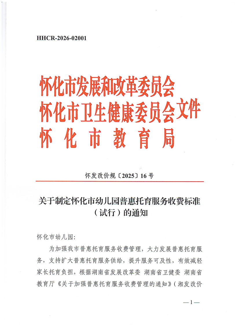索引號:431200/2026-000839 文號:懷發(fā)改價規(guī)〔2025〕16號 統(tǒng)一登記號:HHCR-2026-02001