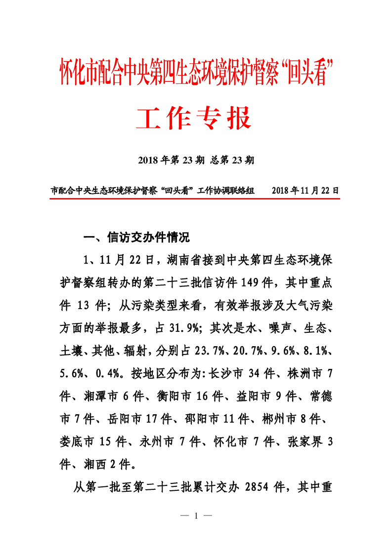 第二十三期 懷化市配合中央生態(tài)環(huán)境督察回頭看工作專報