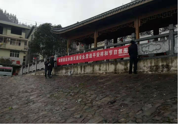 圖13 芷江縣水運(yùn)事務(wù)中心工作人員在重點(diǎn)渡口碼頭顯要位置處懸掛春運(yùn)安全橫幅