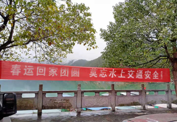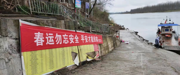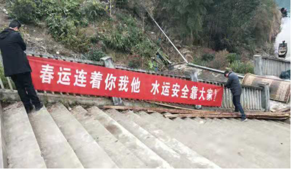圖12麻陽(yáng)縣水運(yùn)事務(wù)中心在重點(diǎn)渡口碼頭顯要位置處懸掛的春運(yùn)安全橫幅