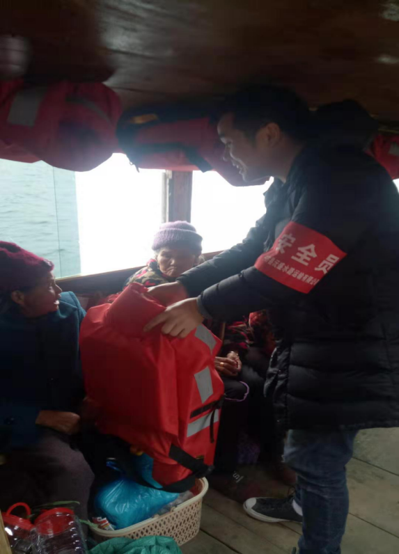 圖7 中方縣渡口簽單員值勤現(xiàn)場(chǎng)——給未穿拿救生衣的乘客發(fā)放救生衣