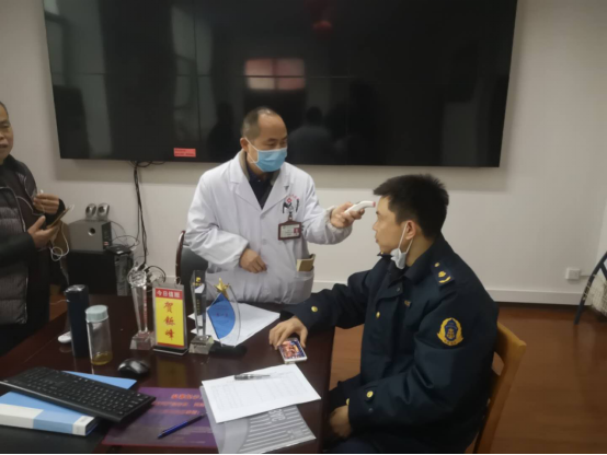 圖一:執(zhí)法人員與衛(wèi)健部門對公交乘客測體溫