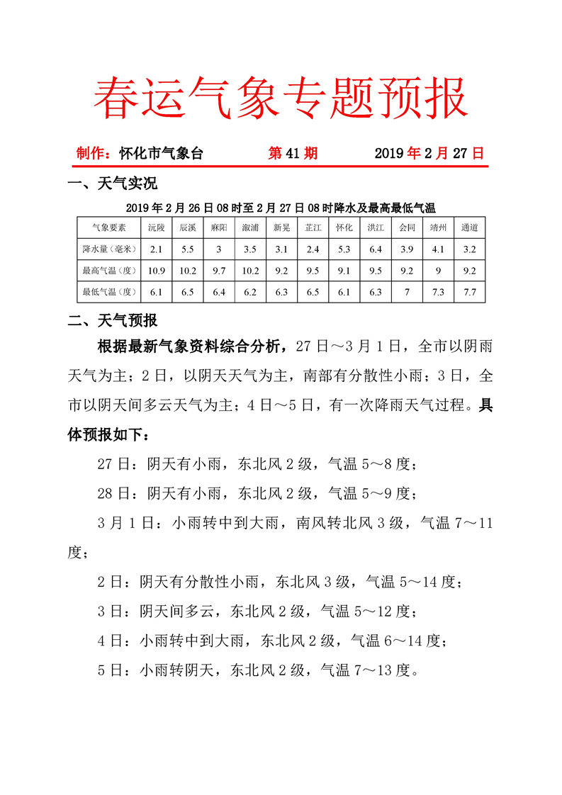 春運(yùn)氣象專題預(yù)報(bào)(第41期)