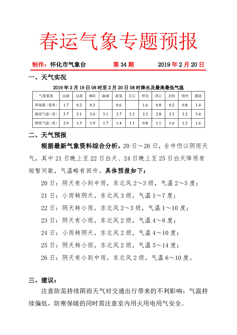 春運(yùn)氣象專(zhuān)題預(yù)報(bào)(第34期)