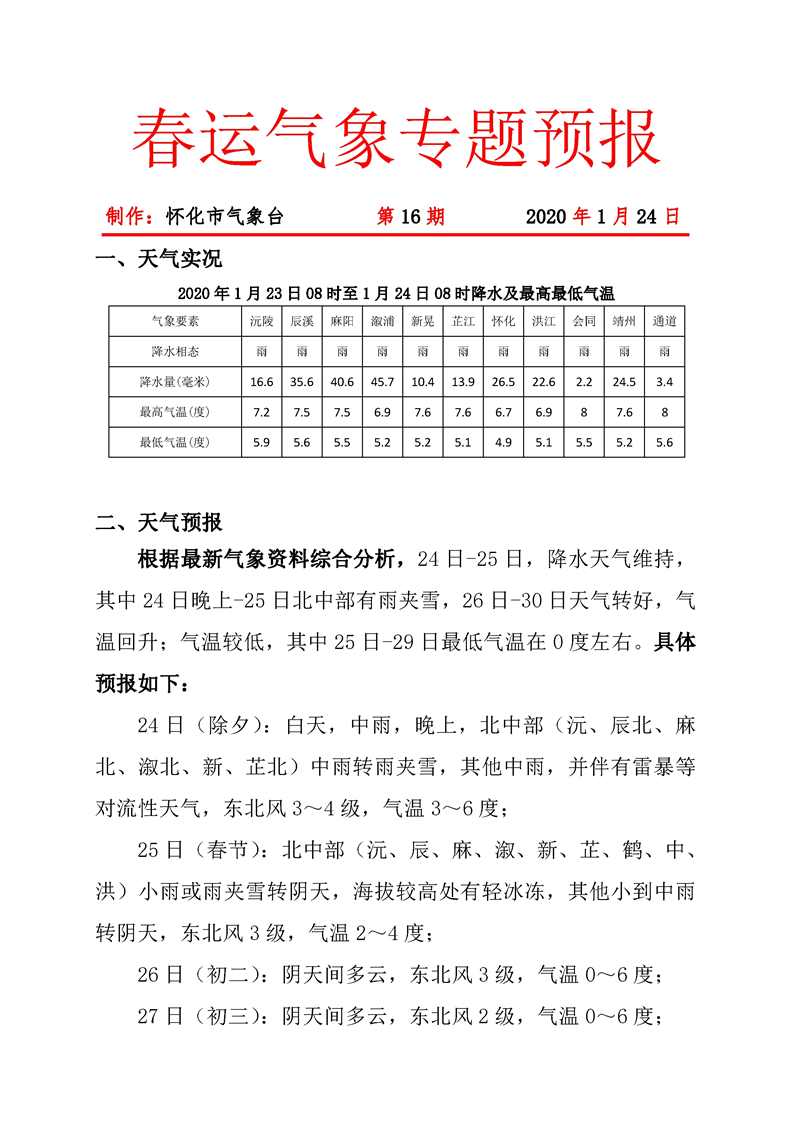 春運氣象專題預報 第16期