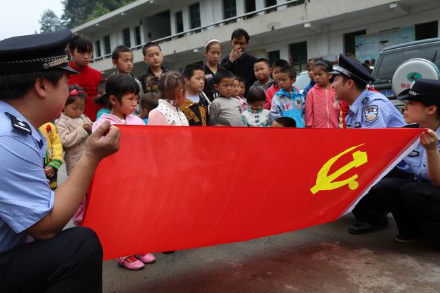 “六一”國際兒童節(jié)即將來臨,5月27日,湖南省辰溪縣公安局組織青年民警,帶著文具、書包、水果等禮物,來到該縣十分偏僻的田灣鎮(zhèn)選場村,和村里的留守兒童們提前過“六一”節(jié),讓留守兒童們感受了節(jié)日的氛圍和祖國大家庭的溫暖。活動中,民警還為同學(xué)們同學(xué)們講解了國旗、黨旗的含義,號召同學(xué)們從小熱愛祖國、熱愛黨,立志做一個(gè)對社會有用人,并一起升起了國旗。