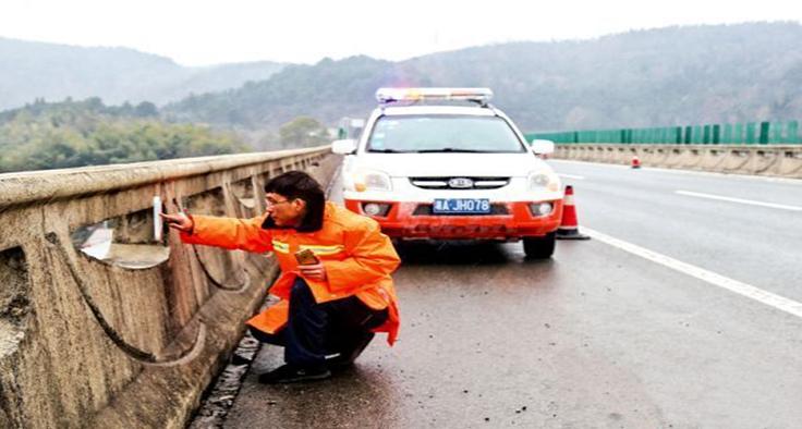 高速公路懷化管理處養(yǎng)護(hù)人員在查看橋梁溫度
