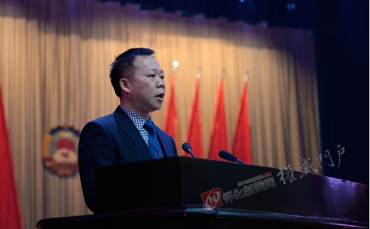 市政協(xié)副主席黃雪鴻代表政協(xié)懷化市委員會常務(wù)委員會向大會報(bào)告市政協(xié)四屆二次會議以來的提案工作情況。