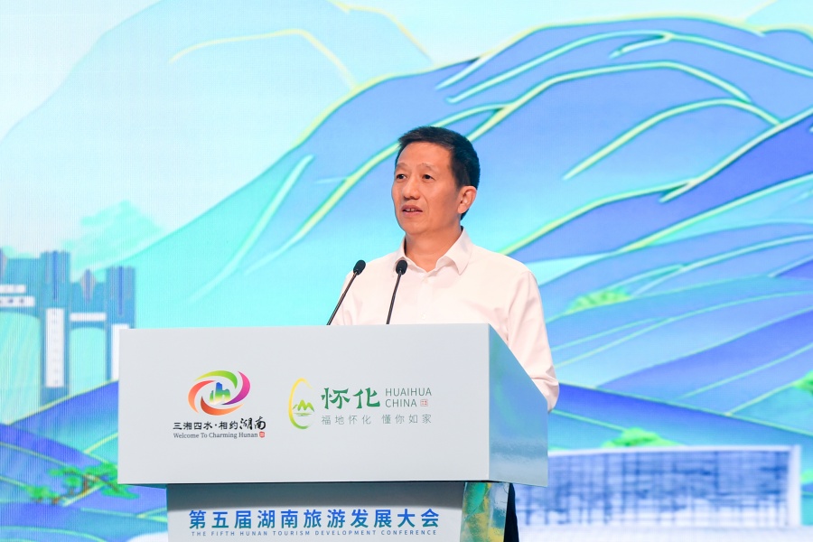 ▲9月17日上午,第五屆湖南旅游發(fā)展大會(huì)開(kāi)幕,市委書(shū)記許忠建作懷化文化旅游推介。(懷化日?qǐng)?bào)全媒體記者 楊智偉 攝)