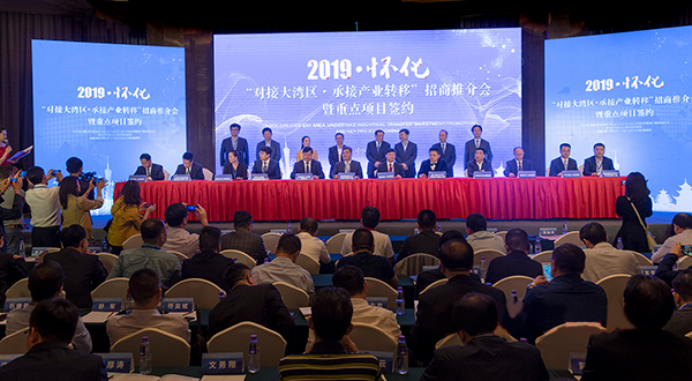 2019年4月14日下午,2019年湖南——粵港澳大灣區(qū)投資貿(mào)易洽談周懷化市“對接大灣區(qū)·承接產(chǎn)業(yè)轉(zhuǎn)移”招商推介會暨重點項目簽約儀式在深圳舉行,現(xiàn)場簽約24個項目,合同金額達(dá)139.6億元。
