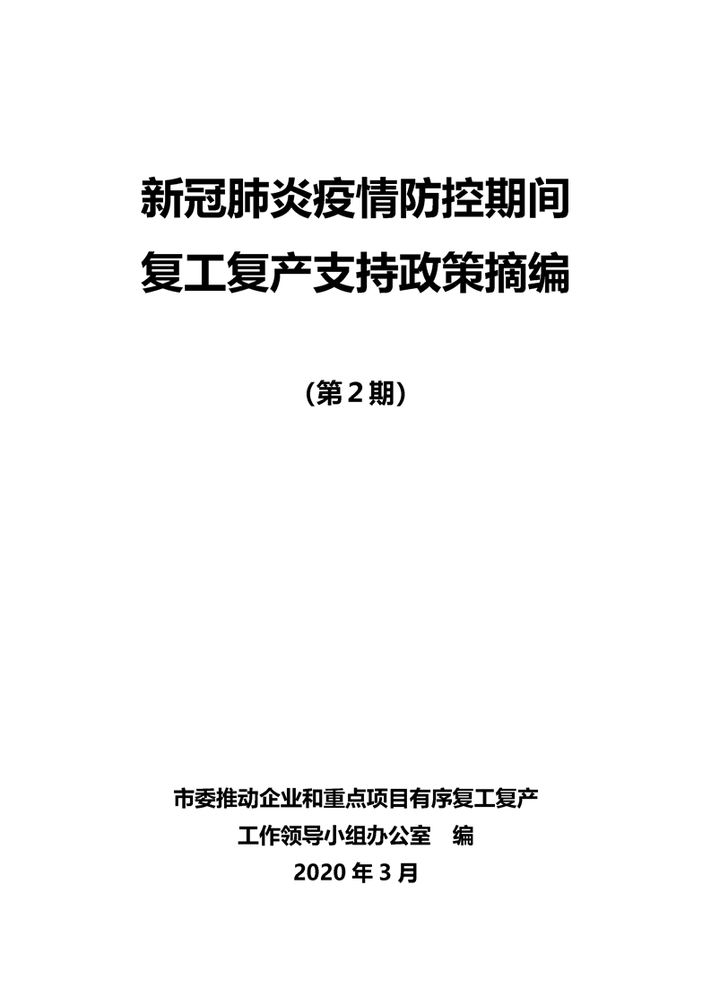 新冠肺炎疫情防控期間復(fù)工復(fù)產(chǎn)支持政策摘編(第2期)