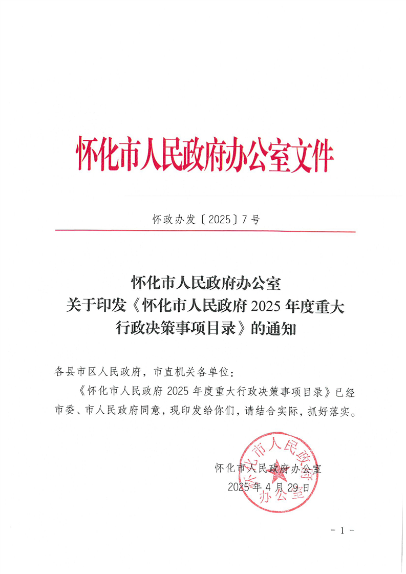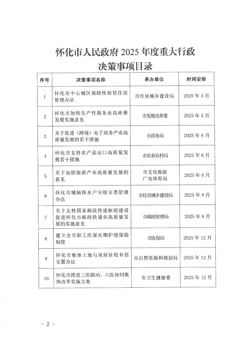 懷化市人民政府辦公室關(guān)于印發(fā)《懷化市人民政府2025年度重大行政決策事項(xiàng)目錄》的通知