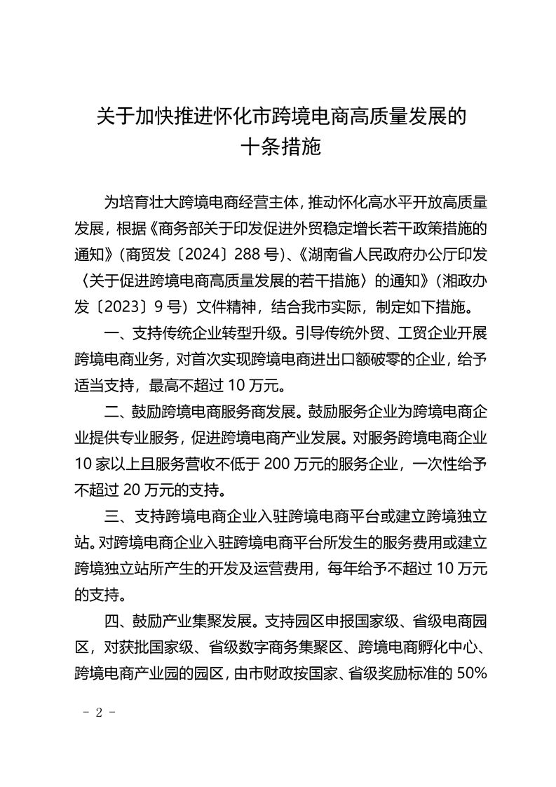 關(guān)于印發(fā)《關(guān)于加快推進(jìn)懷化市跨境電商高質(zhì)量發(fā)展的十條措施》的通知
