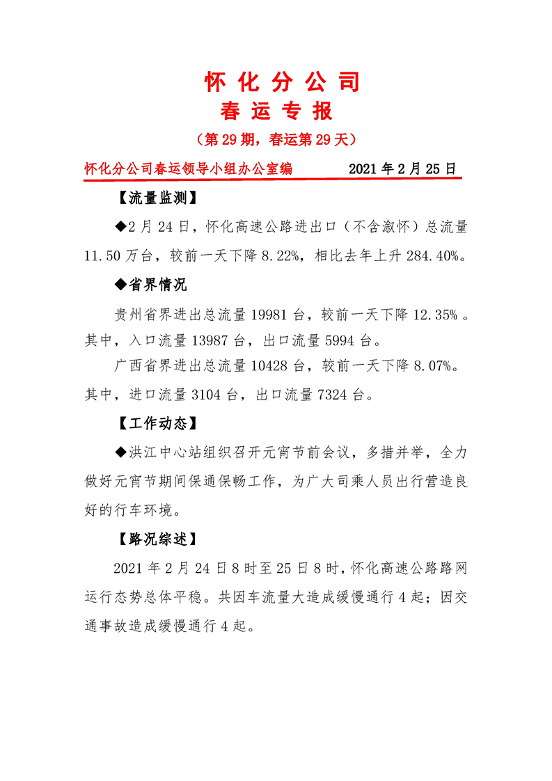 省高速集團(tuán)懷化分公司第29期春運(yùn)專報(bào)