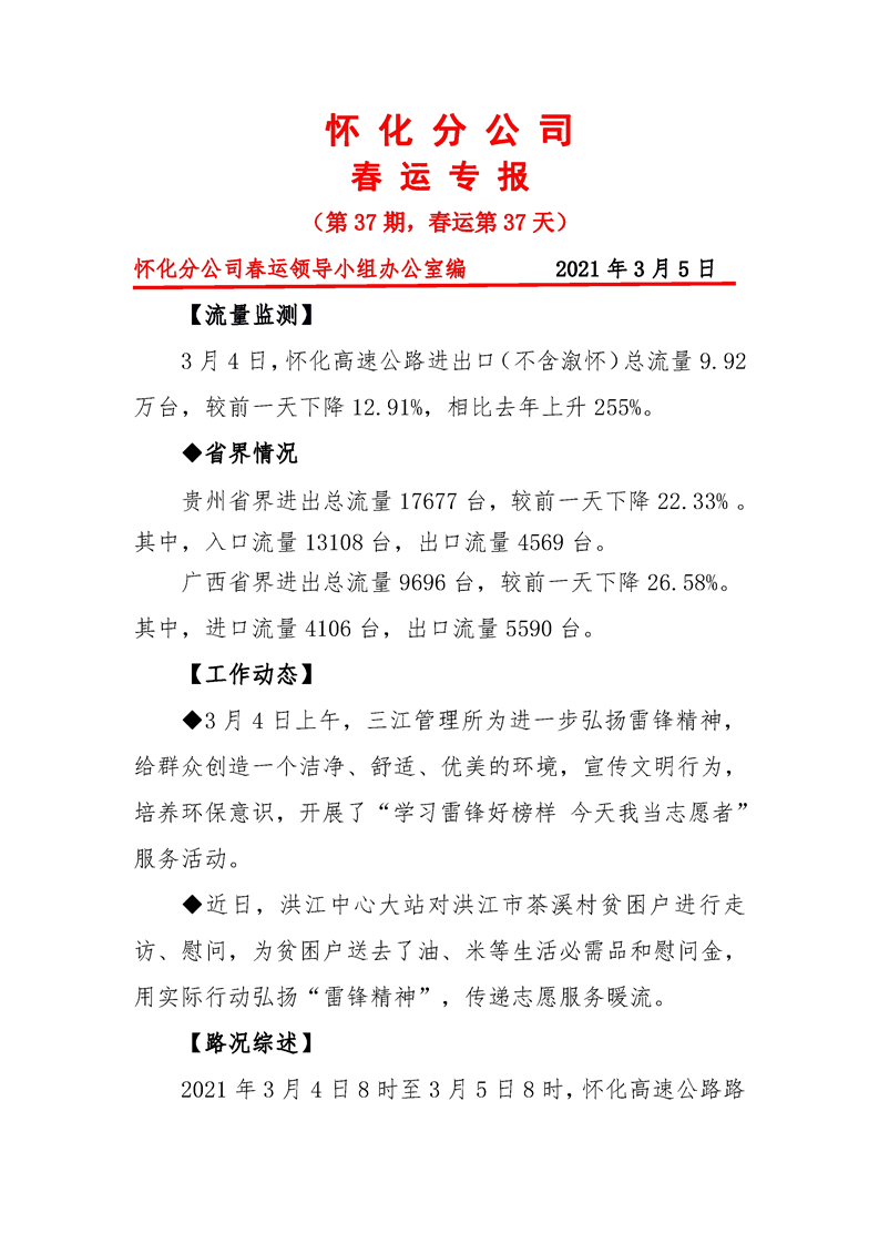 省高速集團(tuán)懷化分公司第37期春運(yùn)專(zhuān)報(bào)