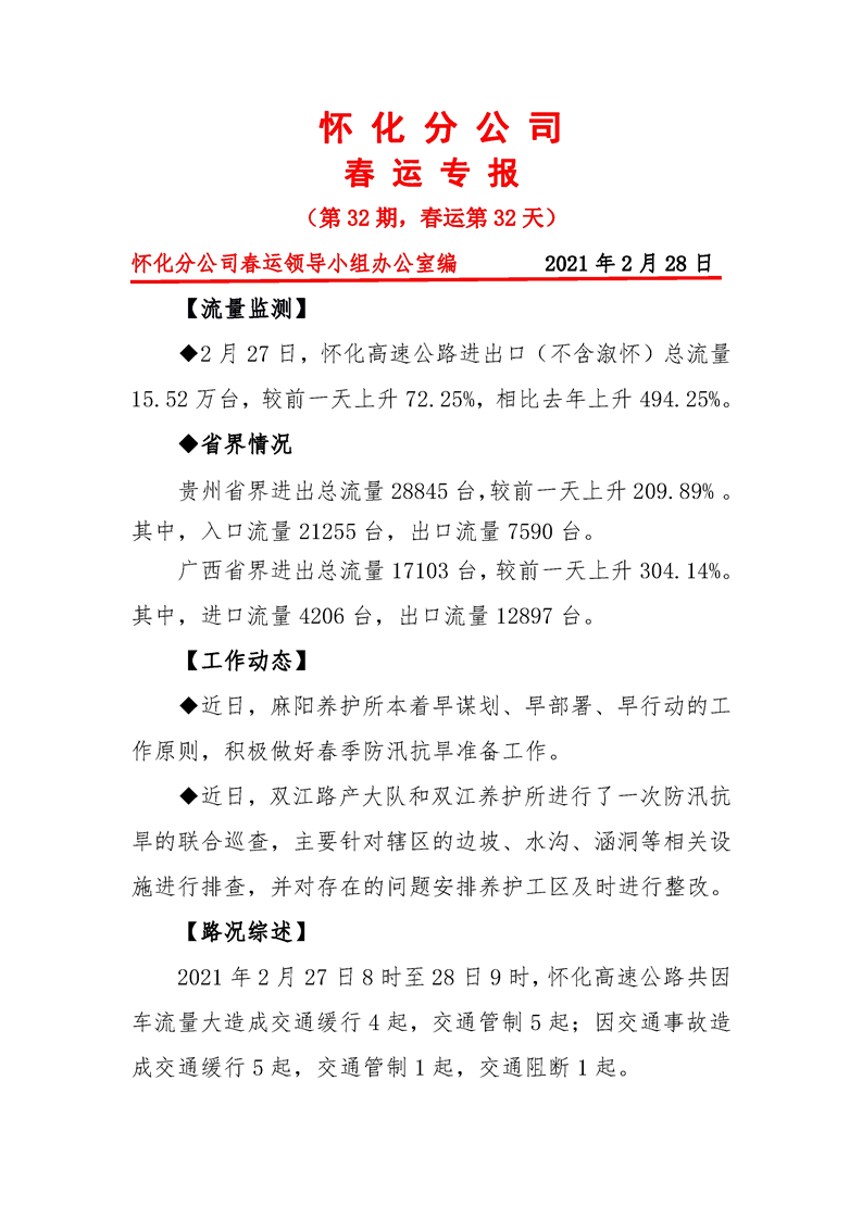 省高速集團(tuán)懷化分公司第32期春運(yùn)專報(bào)