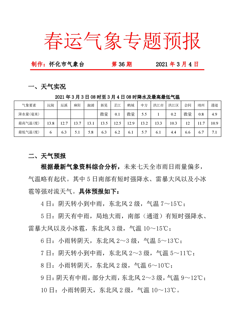 春運期間氣象專題第36期