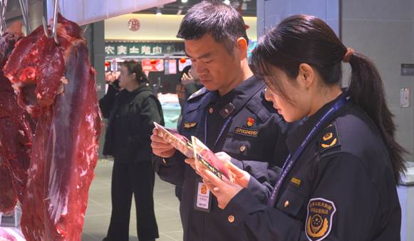 在主城區(qū)大型超市,執(zhí)法人員聚焦春節(jié)消費熱門品類,選取不同品牌預(yù)包裝食品,仔細(xì)查看生產(chǎn)日期、有效期、執(zhí)行標(biāo)準(zhǔn)、配料表等信息,嚴(yán)防“三無”食品、過期食品流入市場;同時,依托農(nóng)產(chǎn)品質(zhì)量安全可追溯系統(tǒng),掃碼查驗牛肉、豬肉等畜禽肉承諾達(dá)標(biāo)合格證、檢疫檢驗證等情況。檢查過程中,執(zhí)法人員現(xiàn)場督促超市經(jīng)營者嚴(yán)格落實食品安全主體責(zé)任,嚴(yán)把進(jìn)貨查驗關(guān),定期自查并及時清理臨期、不合格食品,切實從源頭防范食品安全風(fēng)險。