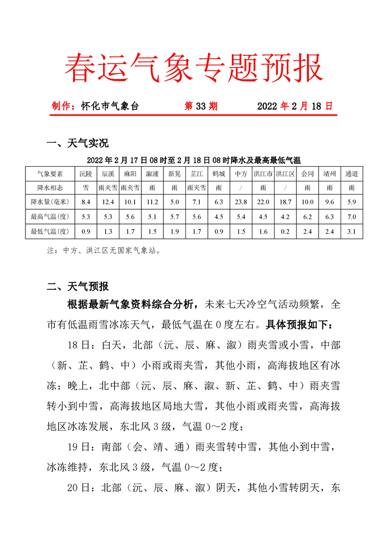 春運(yùn)氣象專(zhuān)題預(yù)報(bào) 第33期