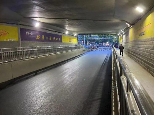懷北路鐵路涵洞是城北區(qū)域進(jìn)出城區(qū)的重要通道,此前涵洞建設(shè)時未配套安裝排水設(shè)施,加之鐵路涵洞頂部漏水,涵洞內(nèi)積水無法及時排除,瀝青路面長期受到雨水侵蝕,瀝青路面出現(xiàn)破損、擁包、跑砂等病害,尤其是幾處路面破損面積較大,兩側(cè)車道整體縱向出現(xiàn)車轍坑槽、坑洞,嚴(yán)重影響行車安全。此次修復(fù)施工后,路基路面坑槽、破損均已修復(fù),且已在涵洞兩側(cè)設(shè)計坡度以便涵洞內(nèi)車行道內(nèi)雨水排出。