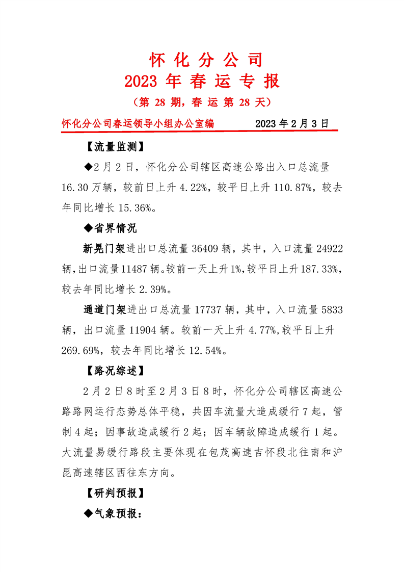 2023年懷化分公司春運專報-第28期