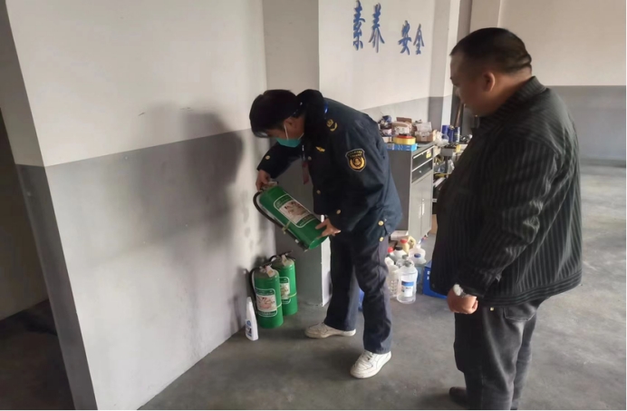 交通執(zhí)法人員檢查運輸企業(yè)消防安全