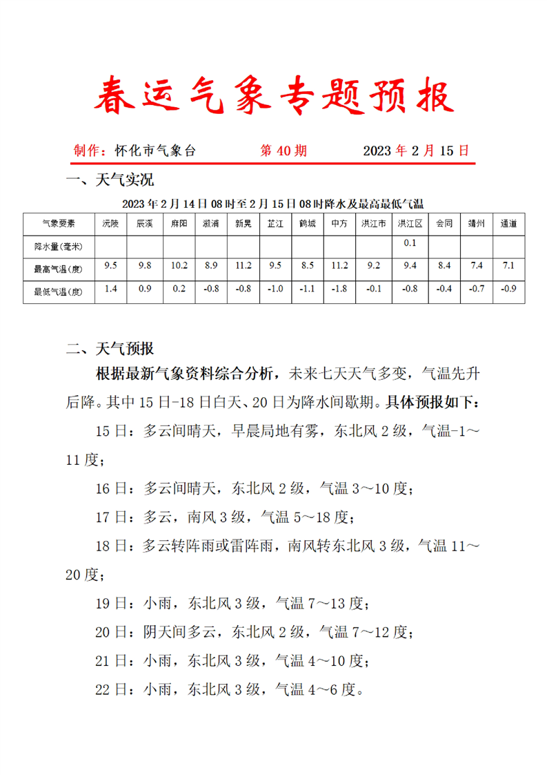 春運(yùn)氣象專題預(yù)報 第40期