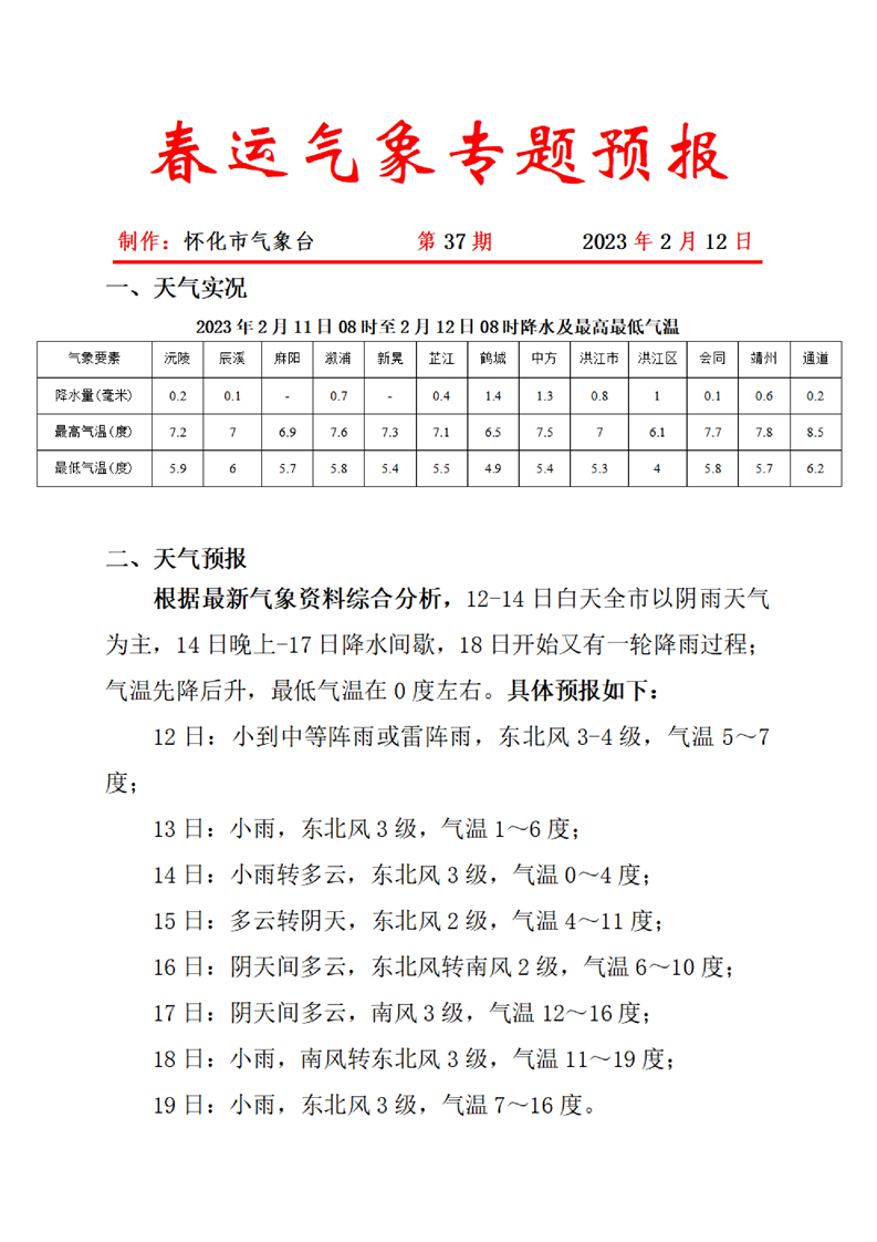 春運氣象專題預報 第37期