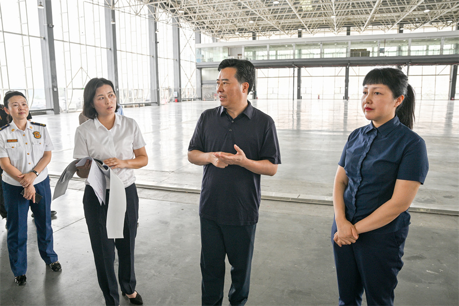 在懷化國際會展中心,黎春秋詳細了解項目掃尾工程建設進度,指出部分需要改進的細節(jié),確定有關具體事項。他強調(diào),我市承辦第十一屆全球湘商大會進入一個月倒計時,必須緊盯時間節(jié)點,倒排工期進度,在確保安全和質(zhì)量的前提下,全力以赴加快項目建設,確保按時保質(zhì)建成投入使用。
