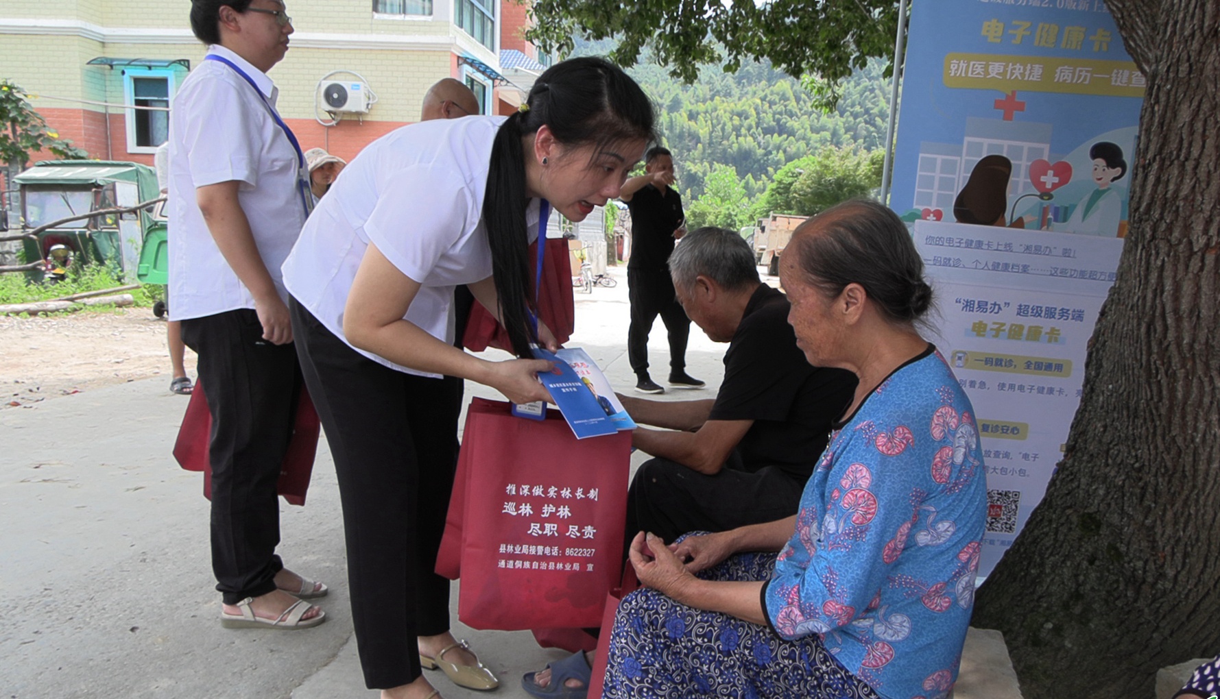 在播陽鎮(zhèn)上寨村,通道縣政務(wù)服務(wù)中心和縣人社局窗口業(yè)務(wù)部門,通過發(fā)放宣傳手冊、擺放展板的方式,耐心為群眾解讀政務(wù)服務(wù)相關(guān)政策,對群眾咨詢的各類問題進行現(xiàn)場解答。此次政務(wù)下鄉(xiāng)主要解決鄉(xiāng)鎮(zhèn)老人“路途遠”“行動不變”等難題,多聚焦社保待遇領(lǐng)取資格認證、工傷保險、城鄉(xiāng)居民基本養(yǎng)老保險、靈活就業(yè)養(yǎng)老保險待遇領(lǐng)取政策等老年人關(guān)心的問題,為他們集中辦理相關(guān)業(yè)務(wù),切實打通服務(wù)群眾的“最后一米”。