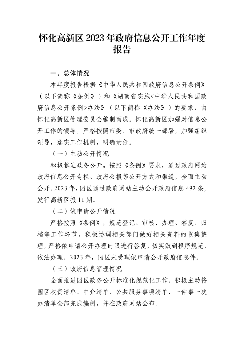 懷化高新區(qū)2023年政府信息公開工作年度報(bào)告