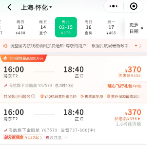 該航線由金鵬航空執(zhí)飛,每周飛行三班,班期為每周二、四、六,來程航班號為Y87579,16:00從上海浦東起飛,18:40到達懷化芷江,回程航班號為Y87580,19:50從懷化芷江起飛,22:10到達上海浦東。具體的航班時間和票價信息已在各大售票平臺公布,旅客可根據自己的出行計劃提前購票。