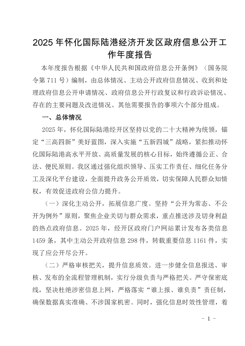 2025年懷化國際陸港經(jīng)濟開發(fā)區(qū)政府信息公開工作年度報告