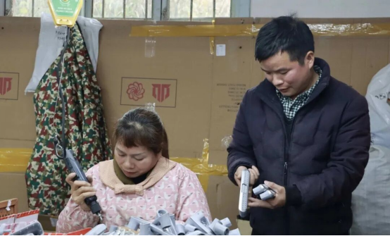 指尖輕旋,螺絲精準入位;巧手拼接,配件一氣呵成……在會同縣林城鎮(zhèn)鷹嘴界村就業(yè)幫扶車間里,二十余名村民正專注組裝箱包把手,機器輕鳴與鄉(xiāng)音笑語交織,奏響鄉(xiāng)村增收的動人樂章。這間由閑置校舍改造而成的車間,是湖南享同實業(yè)“總部+鄉(xiāng)村車間”模式的衛(wèi)星工廠,主要生產(chǎn)箱包把手等簡易配件,企業(yè)統(tǒng)一供料、全程技術(shù)指導、保底回收產(chǎn)品,實行計件薪酬,精準吸納脫貧戶、留守婦女、弱勞動力等就業(yè)困難群體就近上崗。